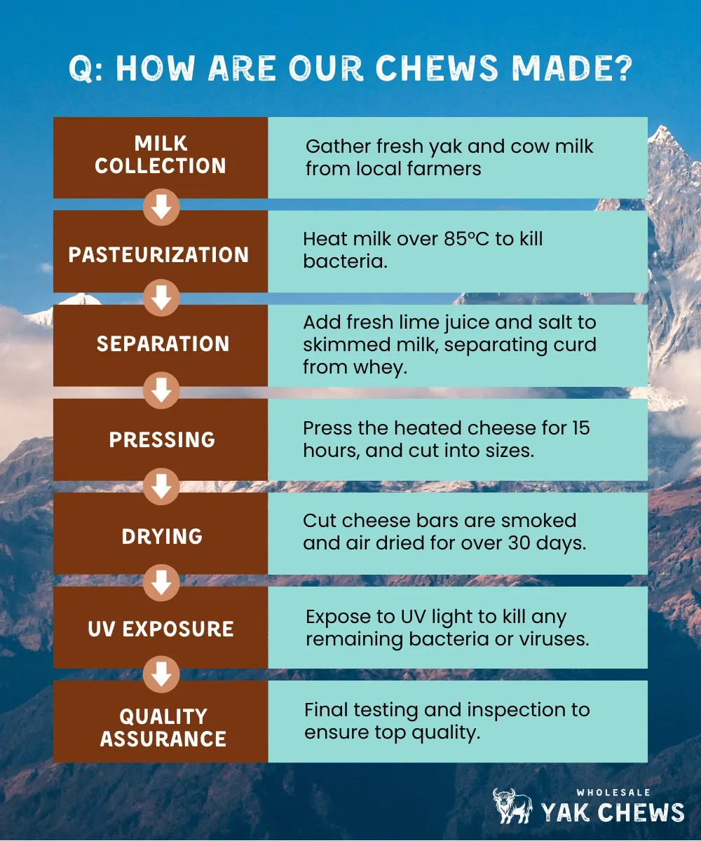 Our yak chews are made from a HACCP-certified facility with rigorous quality assurance to ensure the top quality for our customers.