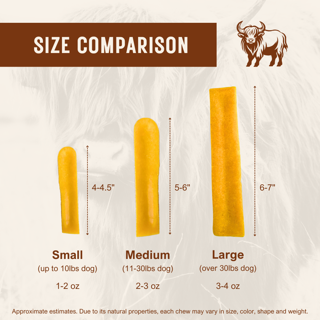 | Chew Size | Length | Weight | Recommended Dog Weight |
